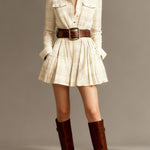 Pridedamas diržas subtiliai apibrėžia liemenį ir leidžia pritaikyti siluetą prie figūros, sukuriant vientisą, moterišką visumą.